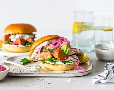 Off The Hook Smoked Salmon Burger With Lemon Dill Aioli